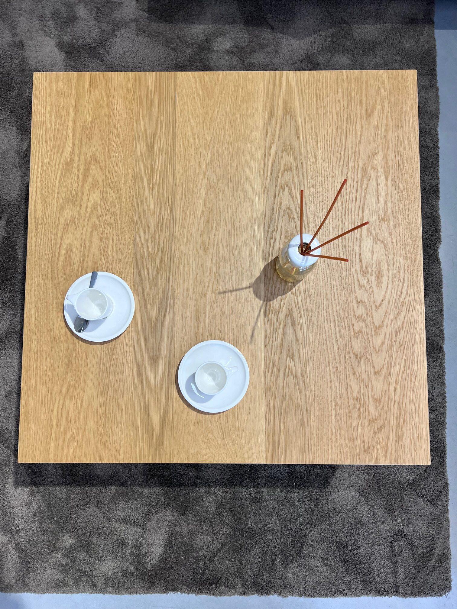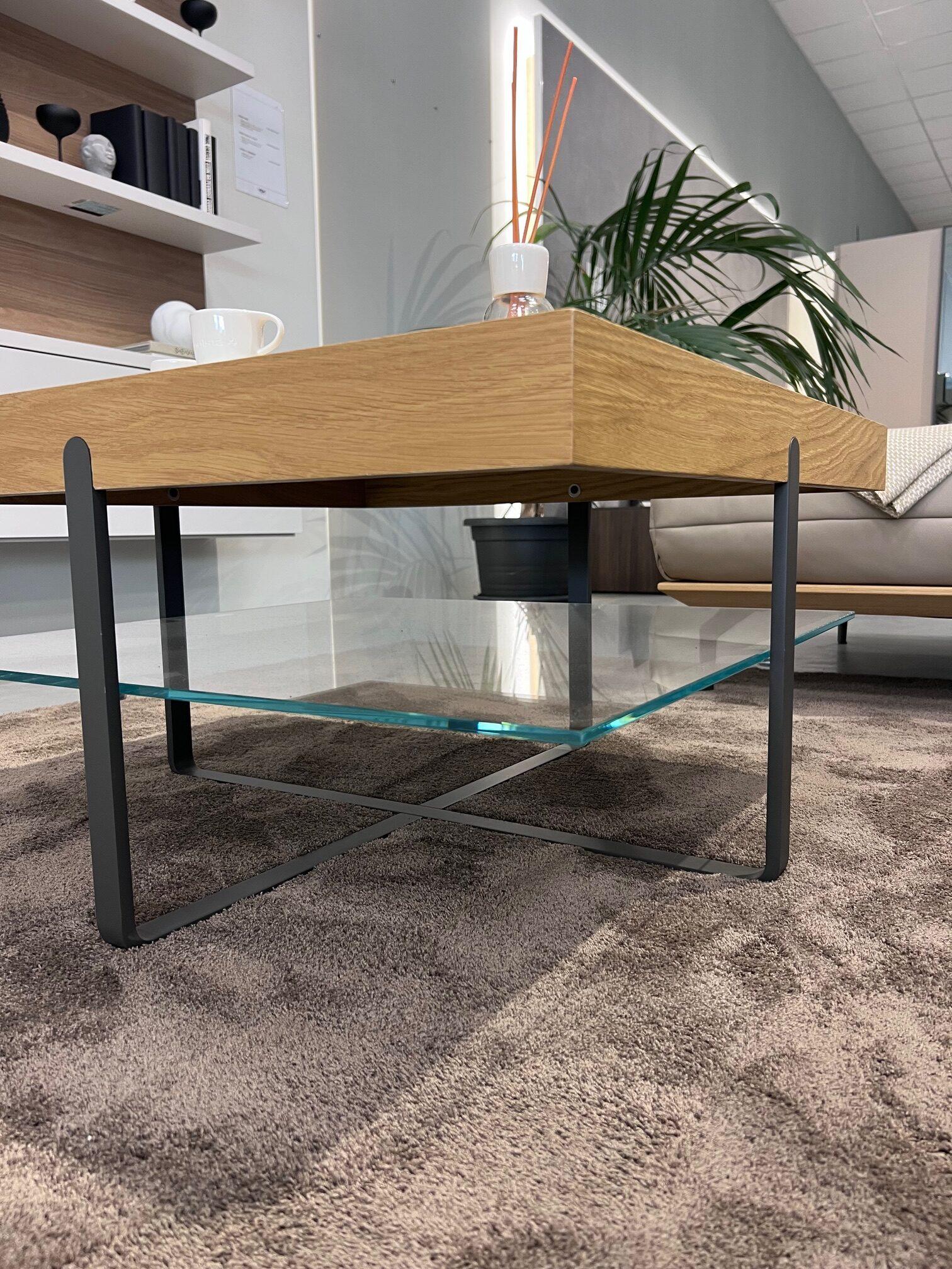 Konferenční stolek CT 240 – v barevném provedení dýha dub + podnož v antracitovém provedení + polička sklo čiré. Rozměr stolku – 75x75cm, v. 42cm.